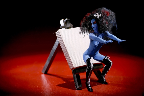 On 30 May, Pfahler will open Rebel without a Cock, her second solo exhibition at East-London gallery Emalin. Pfahler is exhibiting the Femlin Series photographs as well as the monumental sculpture Disco Cock. The former is a collaboration with photographer Andrew Strasser, depicting Pfahler and her Girls of Karen Black as the mischievous eponymous character that was born from Leroy Neiman’s pen and which later gained notoriety as a comic strip in the American men’s lifestyle magazine Playboy. Disco Cock on the other side served many years as one of the most famous backdrops to her concerts, and is now exhibited in Europe for the first time. The sculpture is a collaboration between Kembra Pfahler, Urs Fischer and Spencer Sweeney.